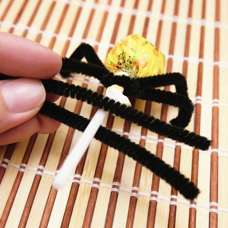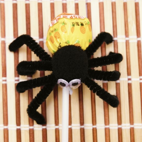 1. Cut the thick knitted yarn into pieces of the same length. Then use two pieces to wrap the stick from above and below. Four pieces make one spider.